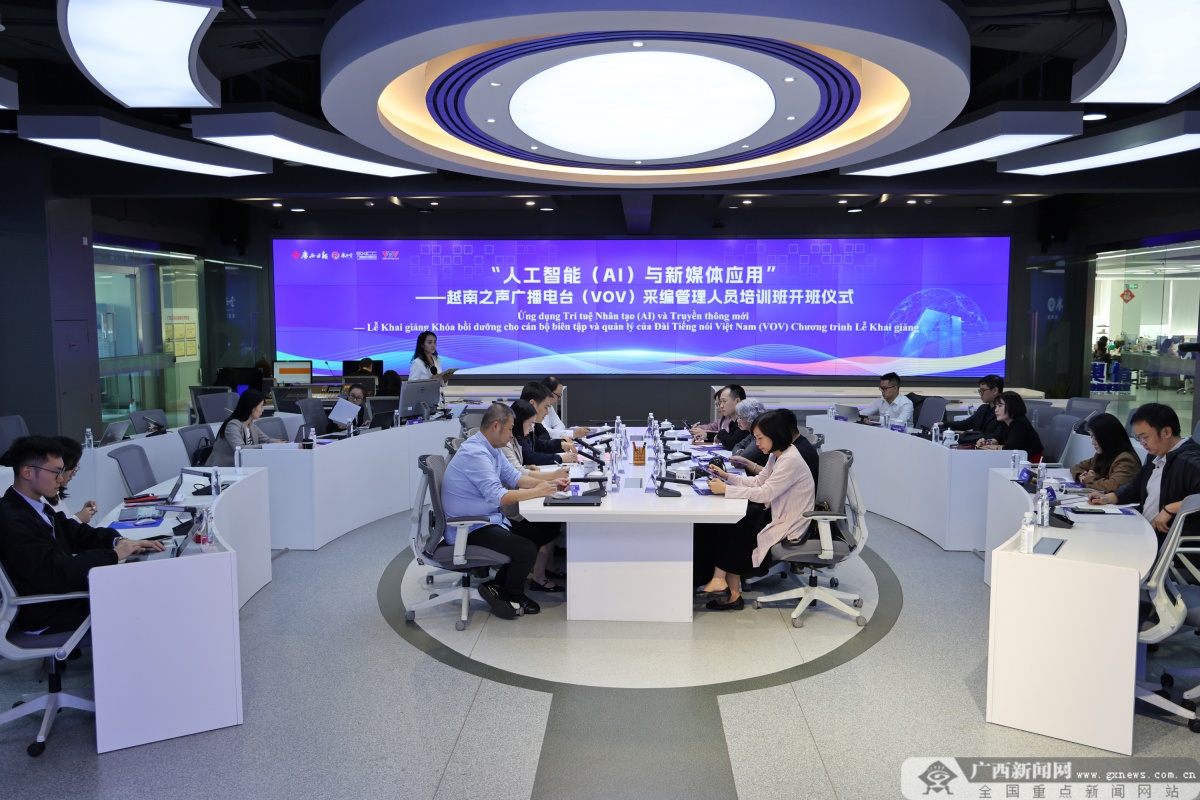 不久,广西日报社收到越南主流媒体的邮件,请求合作举办“AI与新媒体应用”专题培训。广西迅速响应,组织国内人工智能企业和高校专家授课。2025年10月底,越南之声广播电台代表团来访学习。一位越南编辑在课堂上用新学到的技术生成了自己的第一条中文短视频,惊讶地说:“这将改变我们的传播方式。”